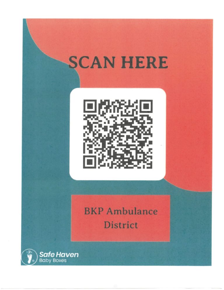 BKP Ambulance District is attempting to place a Safe Haven Baby Box in our community. If you would like to donate to an amazing cause, please use the QR code above to access the link to the donation for our area. Donations are tax deductible.